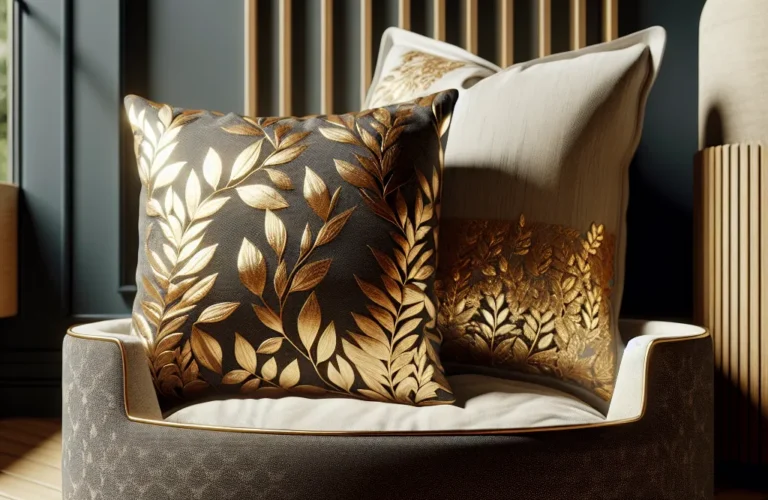 Podsumowując, luksusowe legowisko dla pupila z gratisową poduszką w złote listki to nie tylko praktyczny element wyposażenia dla zwierzęcia, lecz również designerski dodatek, który doskonale wpisuje się w trend złotych listków w nowoczesnym wnętrzu.
